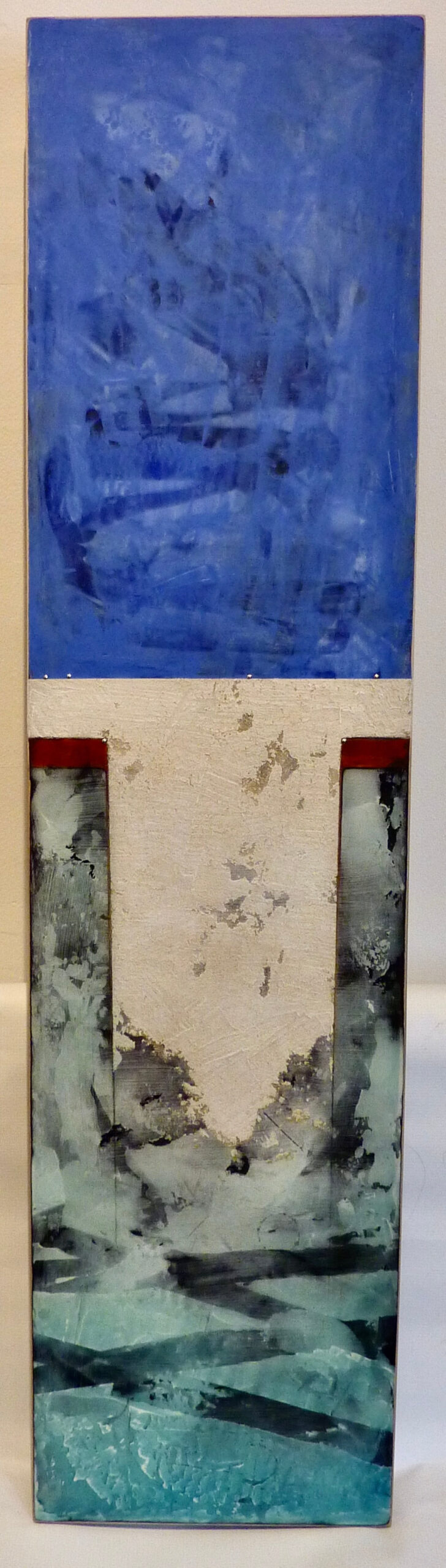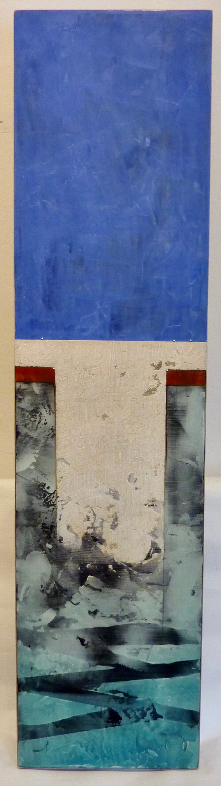 Helene Steene - Akrotiri II, 48 x 12 x 2" oil glazes, marble dust, sand on wood