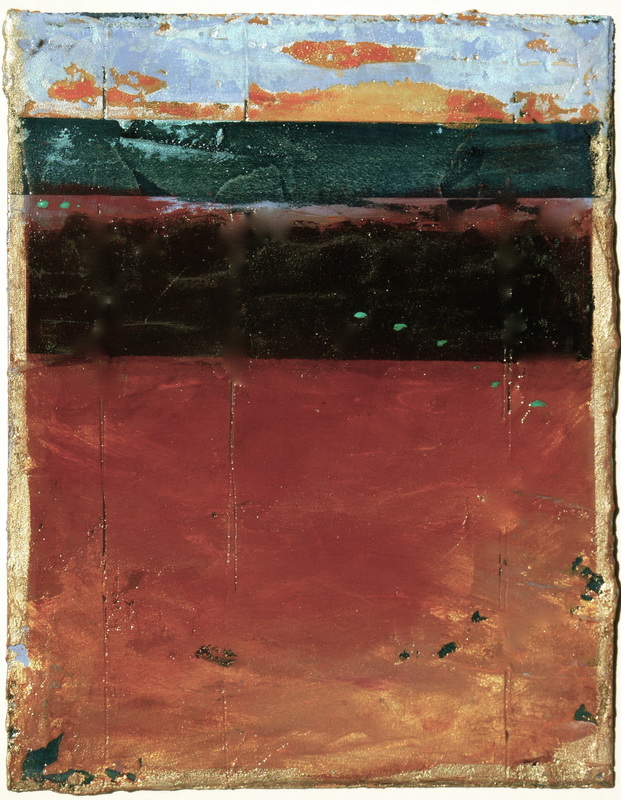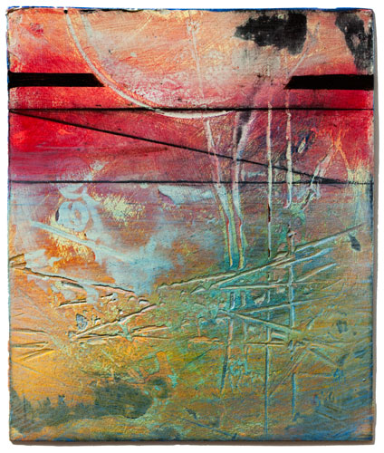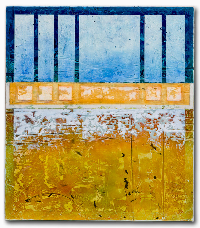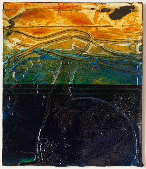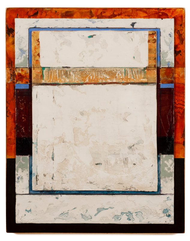 20 X 16 X 1 inches oil glazes using dry mineral pigments, acrylic, marble dust, sand on boards and wood (3 layers)
