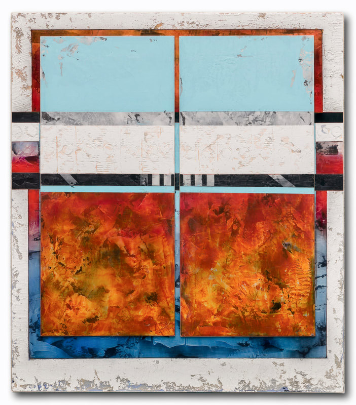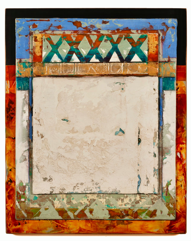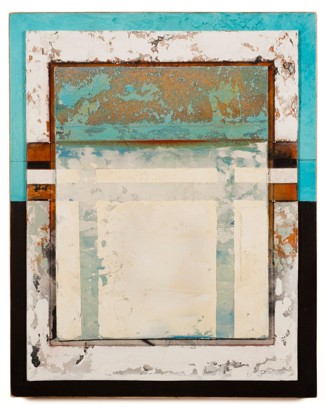 20 x 16 x 1 inches oil glazes using dry mineral pigments, acrylic, marble dust, sand on boards and wood (3 layers)