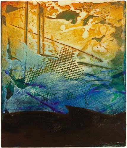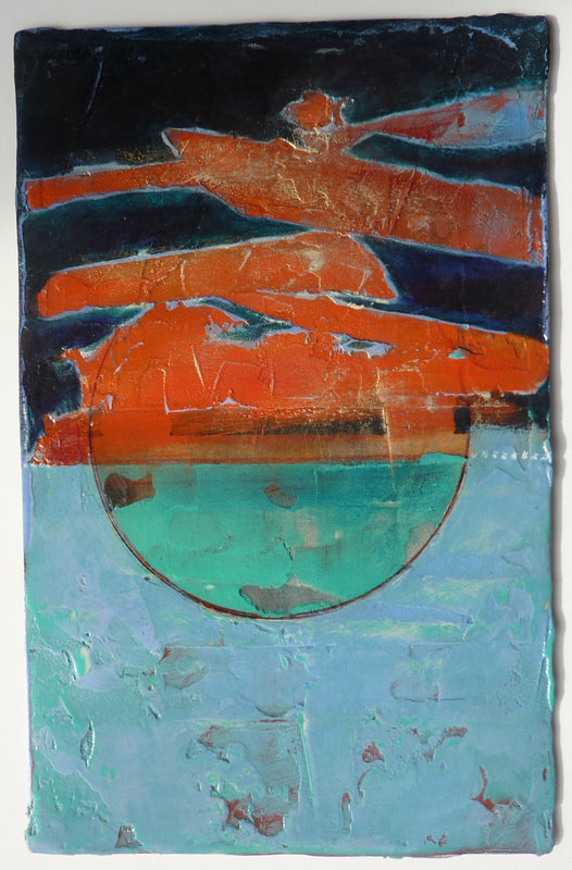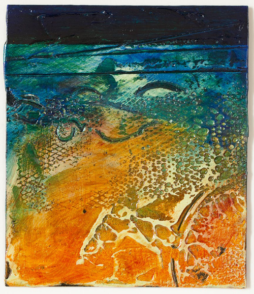 Helene Steene - Antiquity Dive VIII, 17 x 11, oil, acrylic, marble dust, sand, crushed glass SOLD