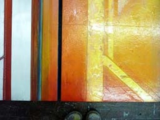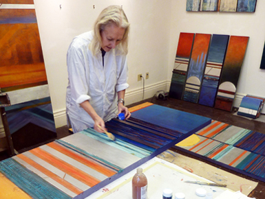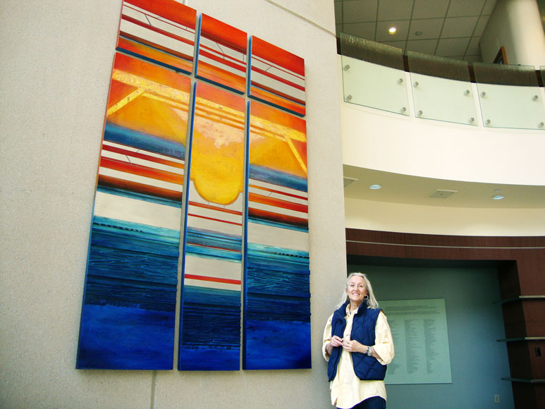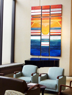 2009 University of Kentucky Hospital commissioned a work for the Markey Cancer Center. Below are a few steps in the process, which resulted in “Shimmer at the Edge”, 6 x 9 feet.